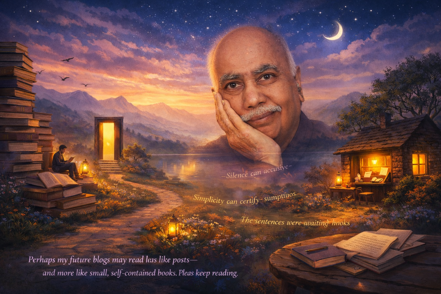From such works, a writer learns that excess often betrays insecurity, while restraint signals trust—trust in language, in the reader, and in truth itself. Reading teaches that silence can accuse, simplicity can confer dignity, and structure can disclose what argument struggles to prove. When one reads deeply and attentively over many years, rhythms begin to seep in—along with moral posture, pauses, and an instinct for what must be left unsaid. This is not a shortcut but a discipline that demands time, patience and practice. And then, almost quietly, writing arrives with a revelation: the sentences were already there, waiting to be recognised. Perhaps that is why my future blogs may read less like posts and more like small, self-contained books.