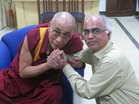 When Dr Kalam introduced me to His Holiness, he asked me to come closer, put my hand on his heart, and keep it there for a few moments. He spoke nothing, and I was speechless anyway. Not only that, but my mind also went blank. The Dalai Lama’s touch was both gentle and firm. I felt as if I were connected to a source of peace, and instantly, the clutter that always surrounded me as thoughts disappeared. It was unplanned and unexpected, but frozen in eternity as something unmovable in this transitory world. Later, when Prabhat Prakashan, New Delhi, invited me to translate the Dalai Lama’s biography written by Mr. Mayank Chhaya in Hindi, I used this picture there.